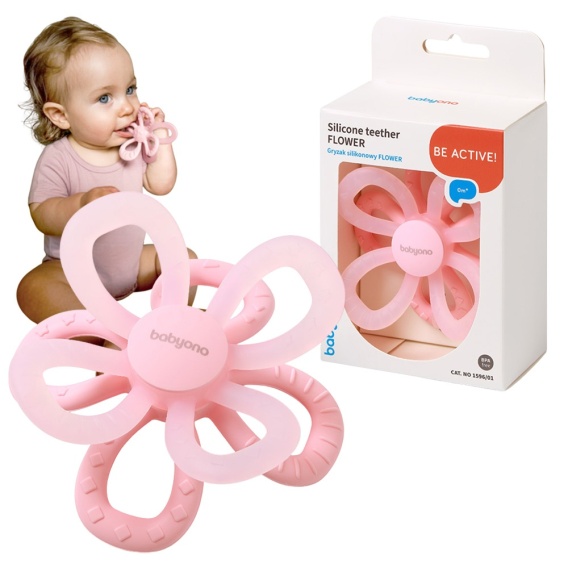 Gryzak sensoryczny silikonowy BabyOno na ząbkowanie do chłodzenia różowy