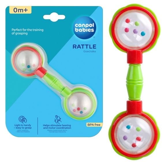 Grzechotka Canpol lekka dla niemowląt sztanga czerwono-zielona 0+