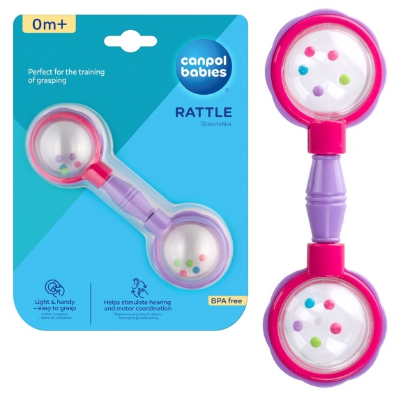 Grzechotka Canpol lekka dla niemowląt sztanga różowo-fioletowa 0+
