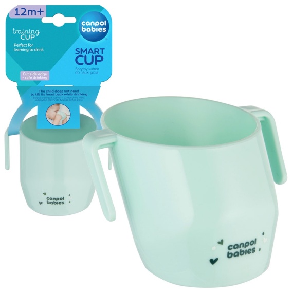 Kubek do nauki picia z uchwytami sprytny krzywy otwary Canpol 12+ turkus