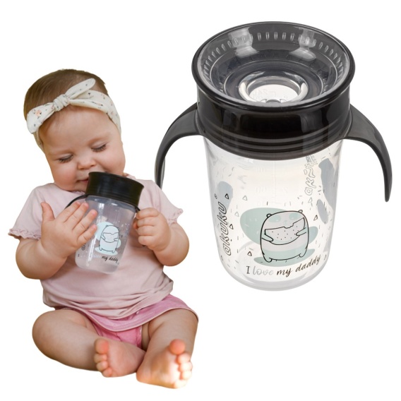 Kubek niekapek do nauki picia 360 dla dzieci Akuku uchwyt 240 ml 6+ czarny