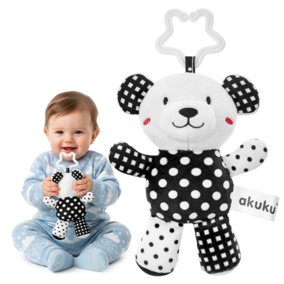 Miś pluszowy zabawka sensoryczna kontrastowa zawieszka przytulanka Akuku