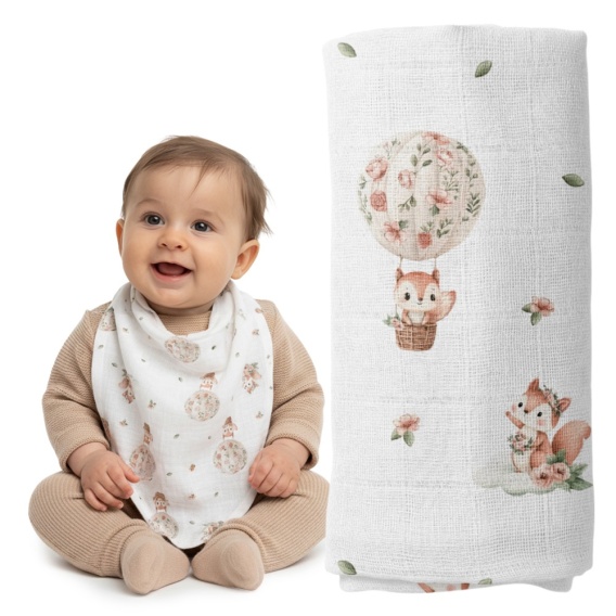 Pieluszka bambusowa Bocioland 40x40 antybakteryjna hipoalergiczna wiewiórka