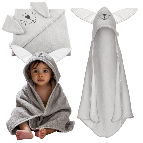 Ręcznik kąpielowy z kapturem Bocioland okrycie kąpielowe 80x80 szary zając
