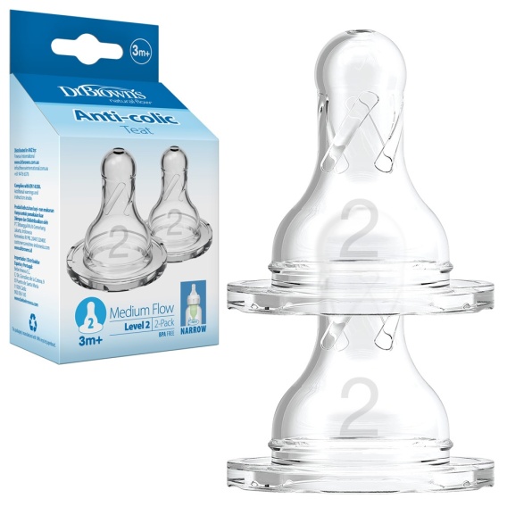 Smoczek do butelki Dr Browns Standard wąski średni przepływ 3+ 2pak