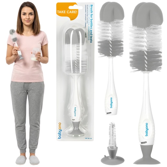 • Szczotka do mycia butelek i smoczków Babyono z przyssawką i gąbką szara