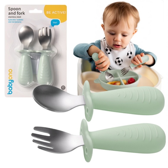 Sztućce dla dzieci ergonomiczne ze stali nierdzewnej Babyono zielone 12+