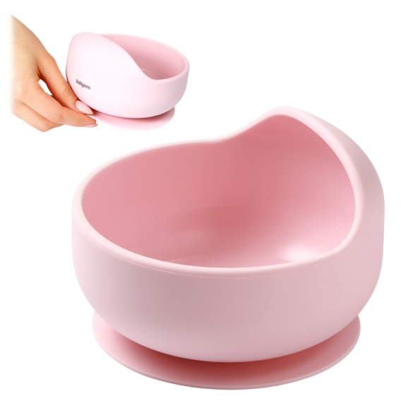 Talerzyk z przyssawką BabyOno silikonowa miseczka do nauki jedzenia różowa