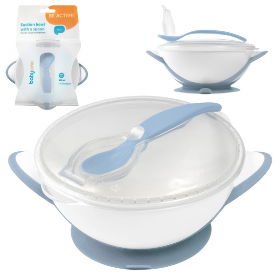 Talerzyk z przyssawką Babyono miseczka z łyżeczką do karmienia niebieski