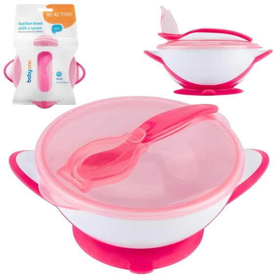 Talerzyk z przyssawką Babyono miseczka z łyżeczką do karmienia różowy